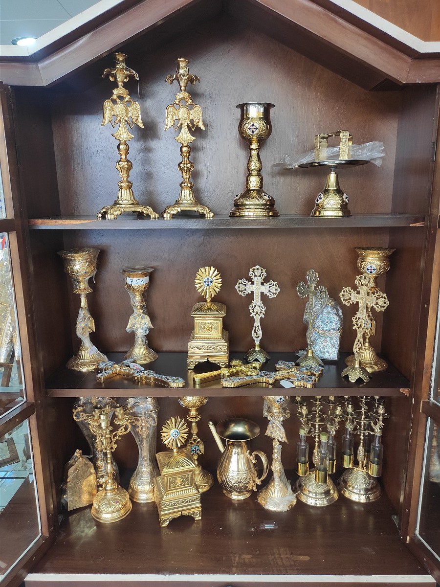 Κηροπήγια εκκλησιαστικά, Μανουάλια , Πολυέλαιοι , Κηροπήγια εκκλησίας, Καντήλια εκκλησίας , Καντήλια Βυζαντινά, Καντήλια κερκυραικά, Δισκοπότηρα, Θυμιατό, Σταυροί ευλογίας, Οστεοθήκες επίχρυσες, Ακοίμιτα, Προσκυνητάρια, Σταυρούς, Φωτιστικά |